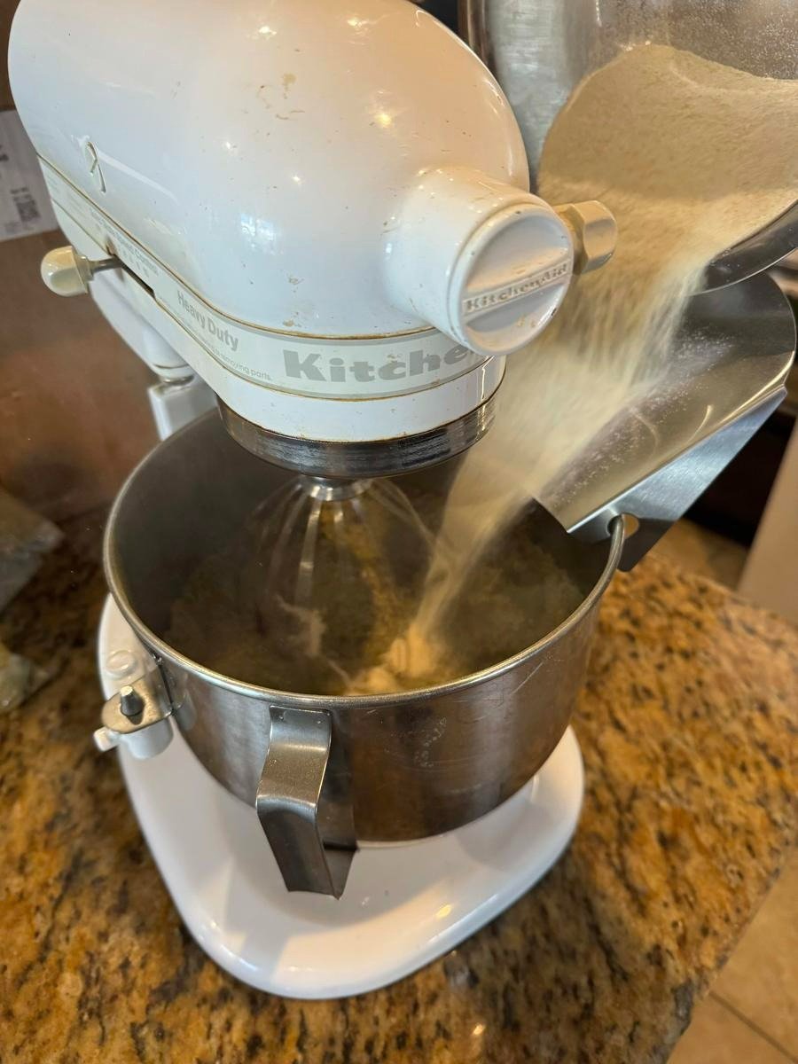 No matter which brand or model you use, this shield clips onto the bowl rim and creates a smooth pouring channel so flour, sugar, and liquids slide neatly into the bowl — not all over your counter.