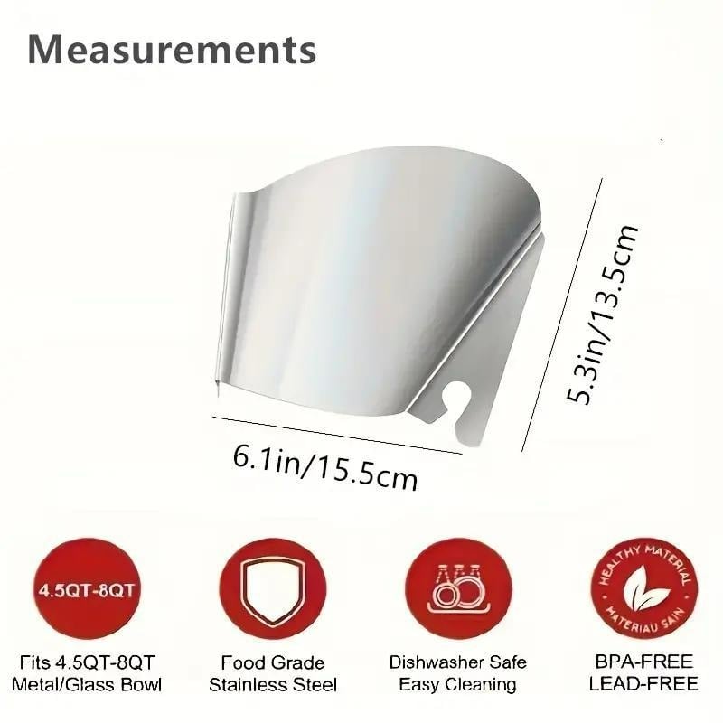 Upgrade your kitchen setup with this Universal Stainless Steel Pouring Shield — designed to fit almost ANY mixer bowl, including stainless steel, glass, and ceramic.